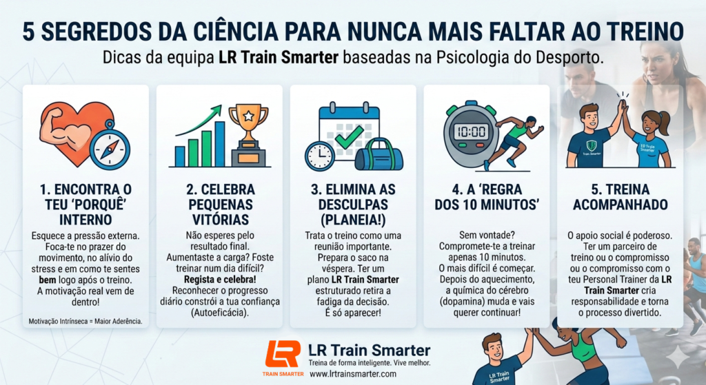 A motivação é o que te faz começar, mas o hábito e a estratégia são o que te fazem continuar. Na LR Train Smarter, o nosso compromisso é dar-te as ferramentas científicas e o apoio humano necessários para que o exercício deixe de ser uma luta e passe a ser a tua melhor rotina.